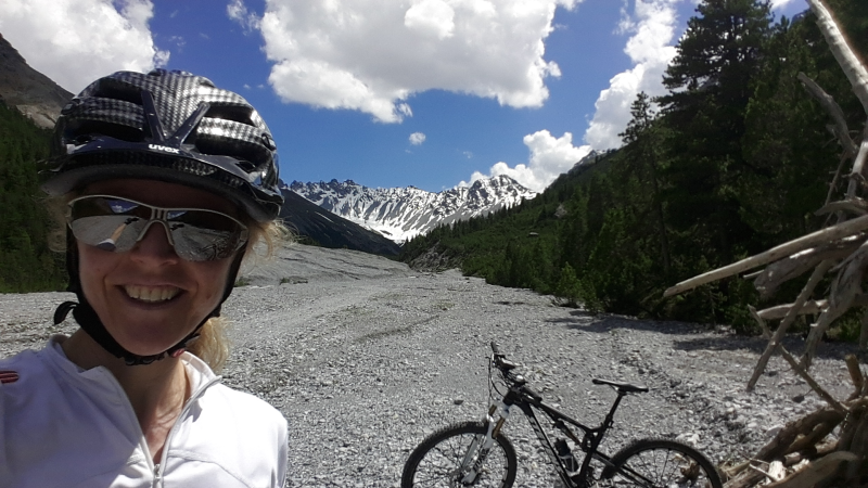 Andrea fährt viel mit ihrem Bike über Stock und Stein und reitet mit ihrem Pferd in der Gegend herum. Wandern tut sie auch noch gerne.